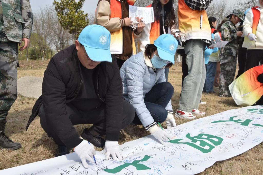 隨后,志愿者(zhe)們在(zai)濕地公園內開展“我(wo)為黃(huang)(huang)(huang)河(he)種棵樹(shu)(shu)”和“凈(jing)林凈(jing)灘”活動(dong)。植樹(shu)(shu)現場大家(jia)(jia)分工(gong)合作,揮動(dong)鐵鍬,培土圍堰,踩實固苗,為這個黃(huang)(huang)(huang)河(he)灘區增添了一(yi)抹生機勃(bo)勃(bo)的綠色(se)。在(zai)綠色(se)公益的倡議下,大家(jia)(jia)宣讀“黃(huang)(huang)(huang)河(he)生態(tai)文明十條(tiao)”,并在(zai)條(tiao)幅上簽(qian)名留念。
