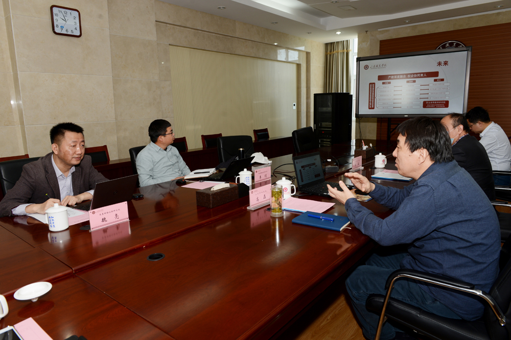 高磊向(xiang)客人(ren)介紹了(le)學(xue)院(yuan)(yuan)發展情況、特色(se)優勢以及學(xue)院(yuan)(yuan)的未來(lai)發展規(gui)劃(hua),重點向(xiang)客人(ren)介紹了(le)學(xue)院(yuan)(yuan)正在(zai)進行(xing)的為深入推進產教(jiao)(jiao)融合,強化校企資源整(zheng)合共享,提高人(ren)才(cai)培養培訓產出(chu)質量(liang),促進就(jiu)業創(chuang)(chuang)業,面向(xiang)產業行(xing)業組建二(er)級學(xue)院(yuan)(yuan)、構建產學(xue)研一(yi)體化機制、探索創(chuang)(chuang)立多類型產教(jiao)(jiao)融合協同育人(ren)新模(mo)式等的情況。